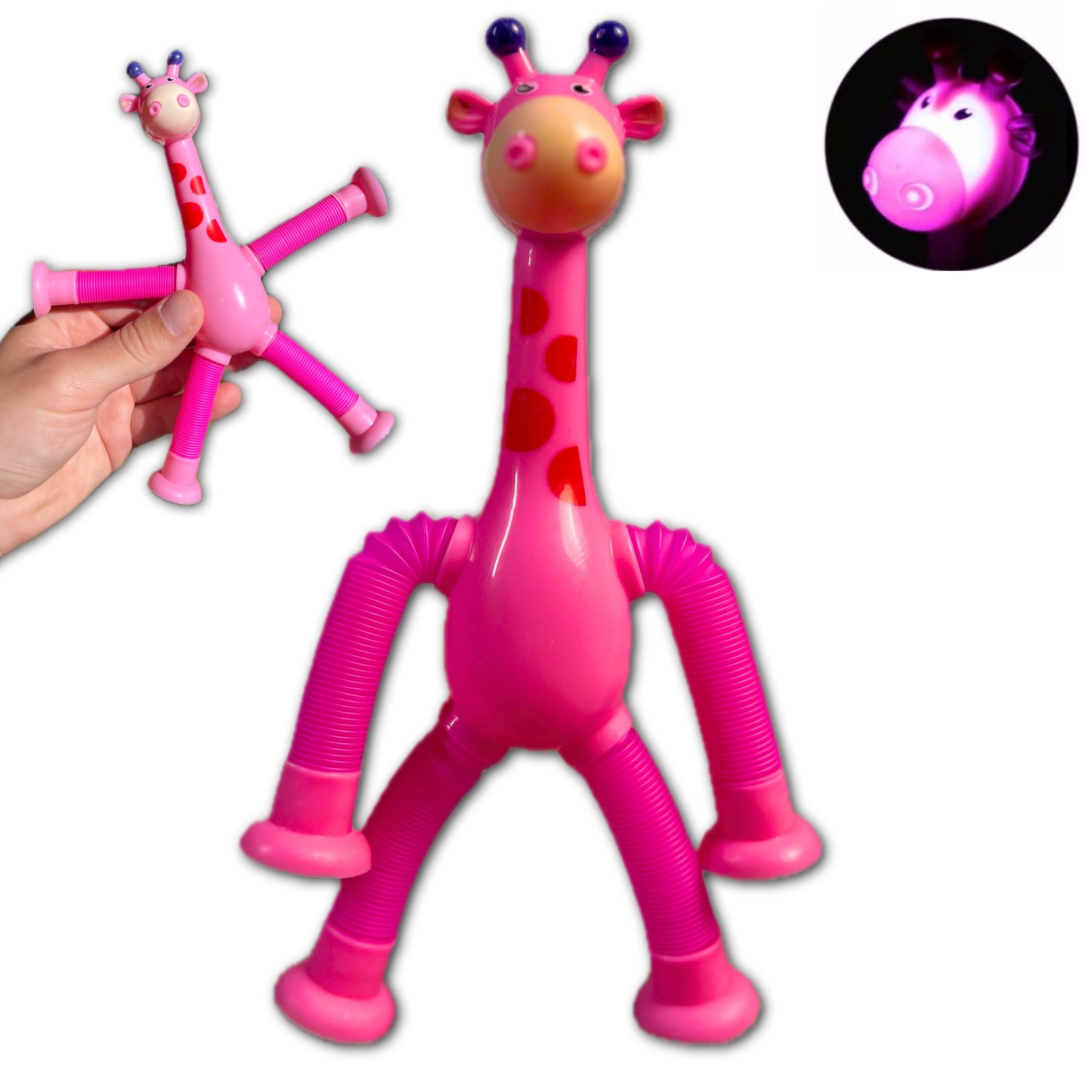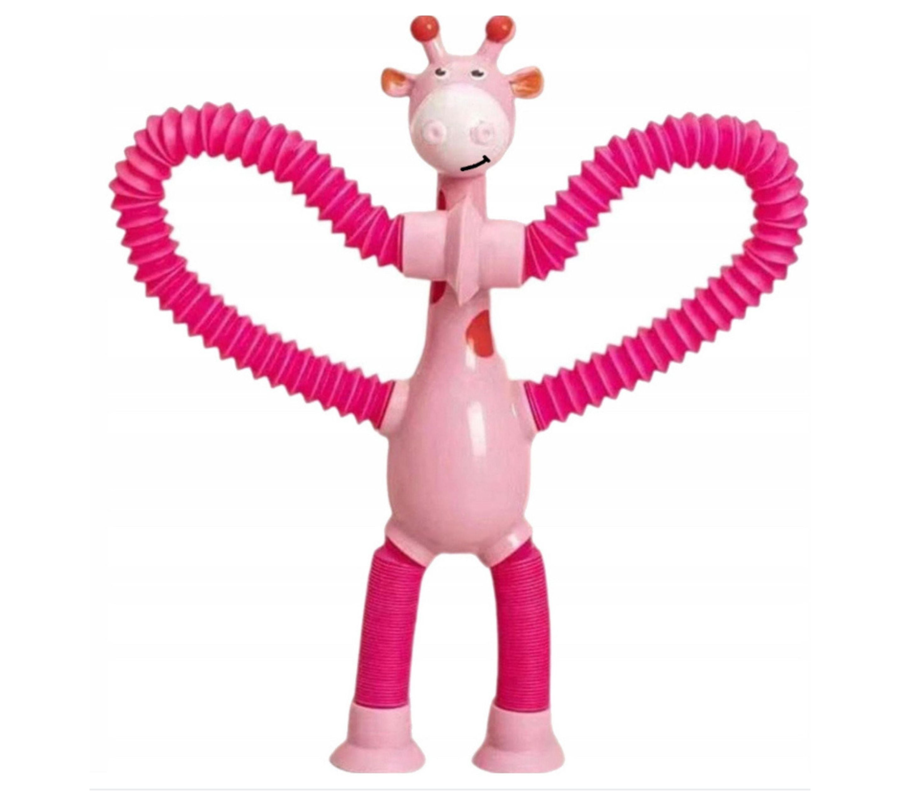 FIGURKA SPRĘŻYNOWA TELESKOPOWA PRZYSSAWKA ŻYRAFA W KOLORZE RÓŻOWYM